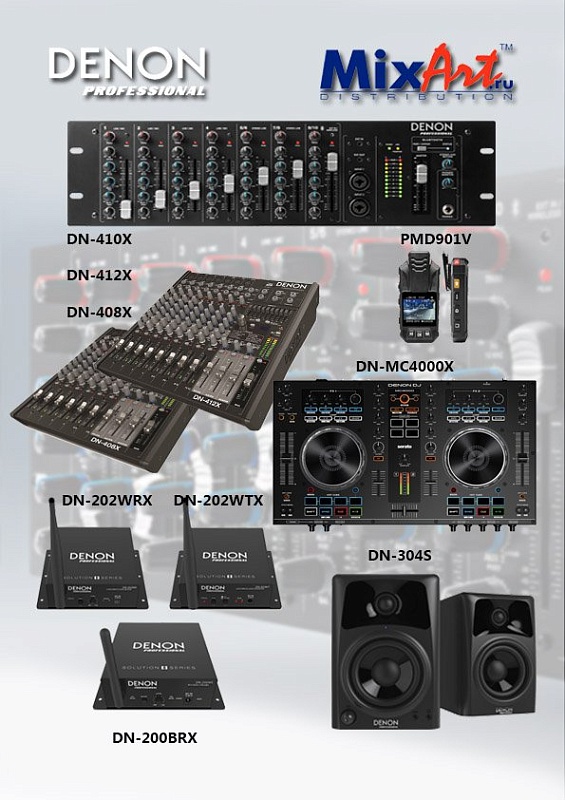 DN-410X – рэковый микшер с функцией Bluetooth. Каналы 1-4 – микрофонные XLR с фантомным питанием 48 В, либо линейные – TRS плюс TRS insert. Каналы 5-8 – стереопары, каналы 7-8 имеют RCA стереовходы. Сигнал с Bluetooth подается на каналы 9-10.