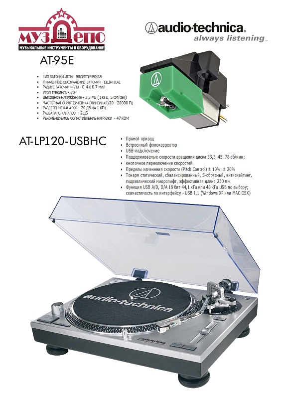 В комплекте с проигрывателем идет картридж AT-95EB.