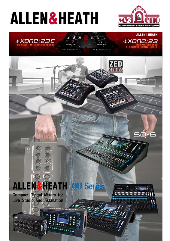 Для тех, кто еще не перешел на цифру и приверженцев аналоговых технологий – прибыли микшеры Allen&Heath популярных серий – цифровые: SQ, Qu и dLive и аналоговые – серия ZED и XONE.