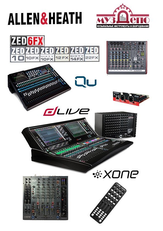 Очередная крупная и разнообразная поставка микшерских пультов ALLEN&HEATH! Серия ZED: ZED6FX, ZED10, ZED10FX, ZED60-10FX, ZED12FX, ZED60-14FX, ZED22FX