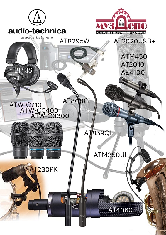 Audio-Technica - прибыли студийные и инструментальные микрофоны, сменные капсюли для ручных радиосистем и многое другое