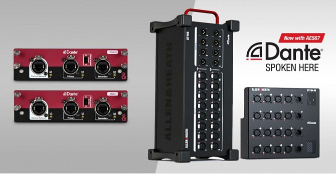 Вместе с новыми модулями входов/выходов также были представлены две новые карты Dante для флагманской микшерной системы dLive от Allen & Heath, которые обеспечивают передачу 64x64 или 128x128 аудио в формате 96 кГц (возможно переключение на 48 кГц). Данные карты представляют собой выгодное по цене решение для пользователей, которым необходимо организовать передачу по Dante большого количества каналов аудио высокого качества для цифрового сплиттирования, виртуального саундчека или студийной записи.
