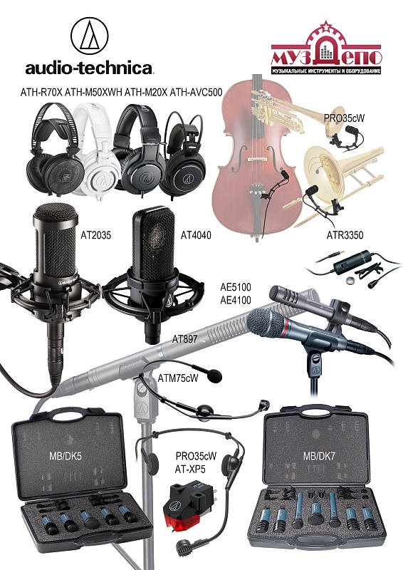 AE5100/инстр. кардиоидный конденсаторный с большой диафрагмой, PRO35СW/ кардиоидный конденсаторный на "прищепке" для инструментов c высоким давлением (brass, strings, piano, snare, toms и т.д.),