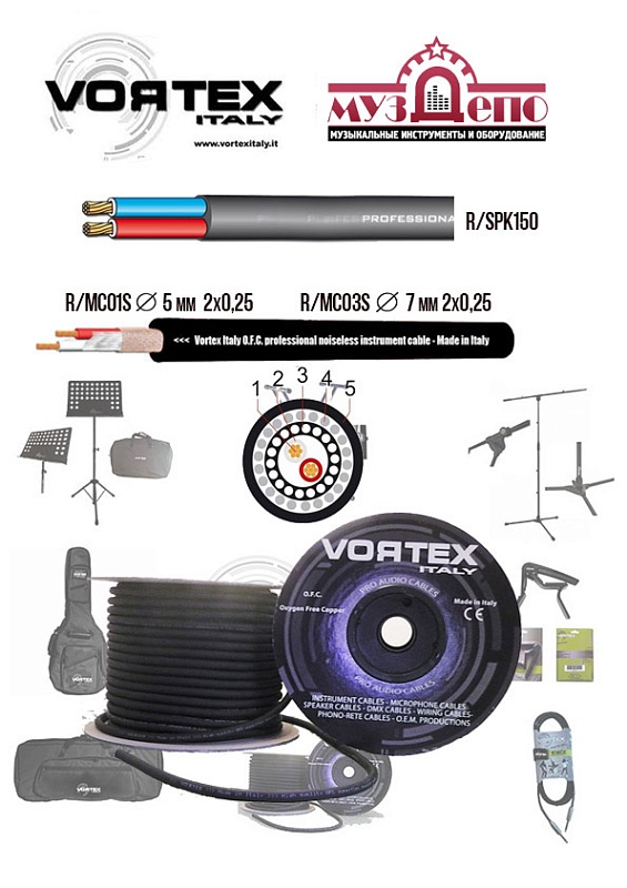 R/MC01S - Профессиональный стерео кабель, ø5.00мм, 2x0,25